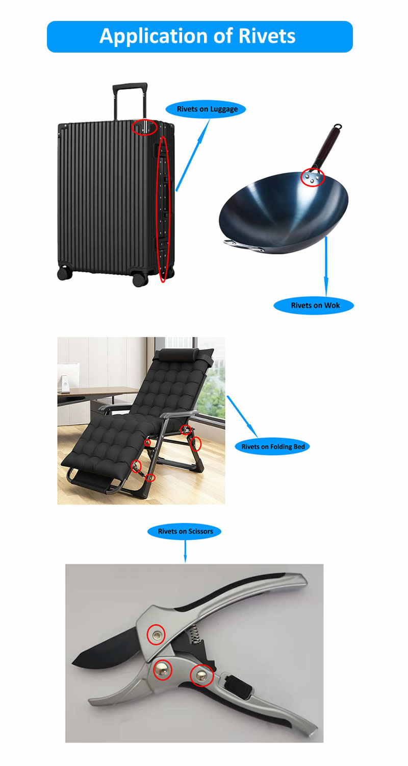 3. Aluminiumnieten, einschließlich Aluminium-Vollnieten, Aluminium-Halbhohlnieten, Aluminium-Rohrnieten.