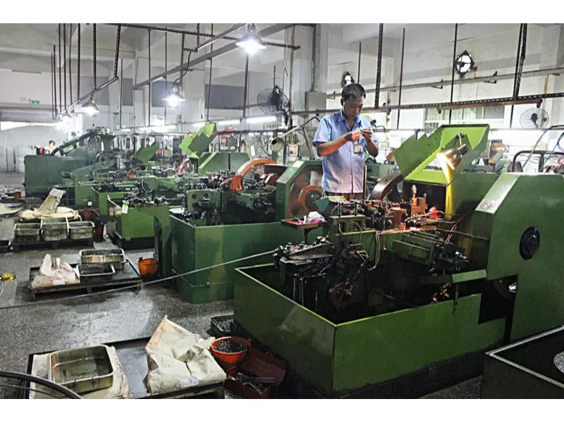 Nuote Metals verfügte über mehrere Produktionslinien zur Herstellung verschiedener Metallteile, beispielsweise eine Kaltformlinie zur HerstellungFlussetw, einschließlichsolide Nieten, sEMI-RohrnietenUndspezielle NietenUndSpezialschrauben.Und wir haben auch Tiefziehmaschinen für die Produktion ausgestattetÖsenund Hochgeschwindigkeits-Stanzproduktionslinie zu produzierenStanzteileund CNC-Drehmaschine zur Herstellung hoher Qualität CNC-Drehteile.